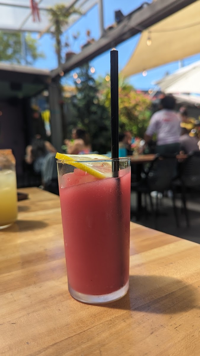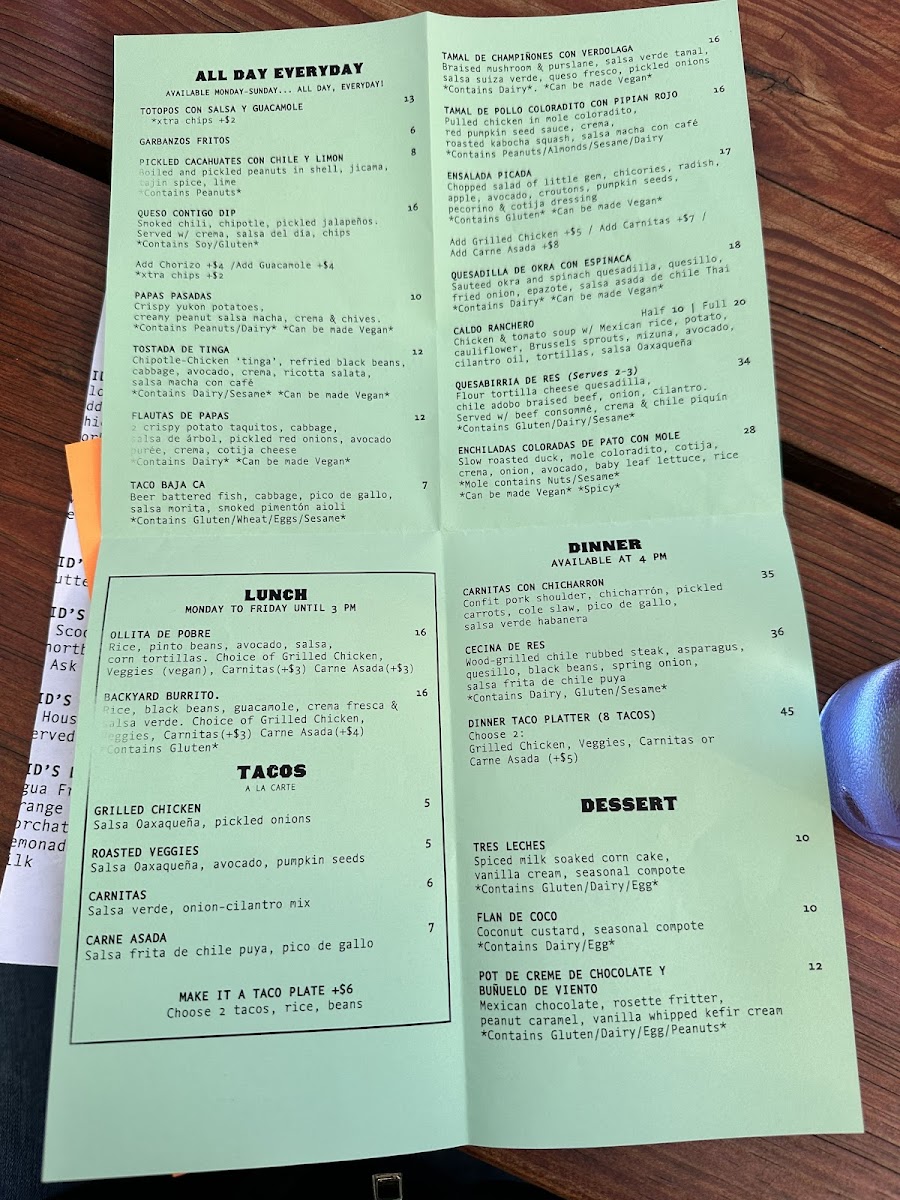 The moment you step into NIDO's, you are greeted by a colorful, open-air dining environment that feels like a friendly oasis amidst the hustle and bustle of the city. The expansive backyard is beautifully adorned with an assortment of umbrellas, creating a cozy yet vibrant atmosphere that beckons you to relax and enjoy your meal in the California sunshine. The outdoor setting is not just inviting but also encourages leisurely dining—perfect for savoring every moment with friends or family.